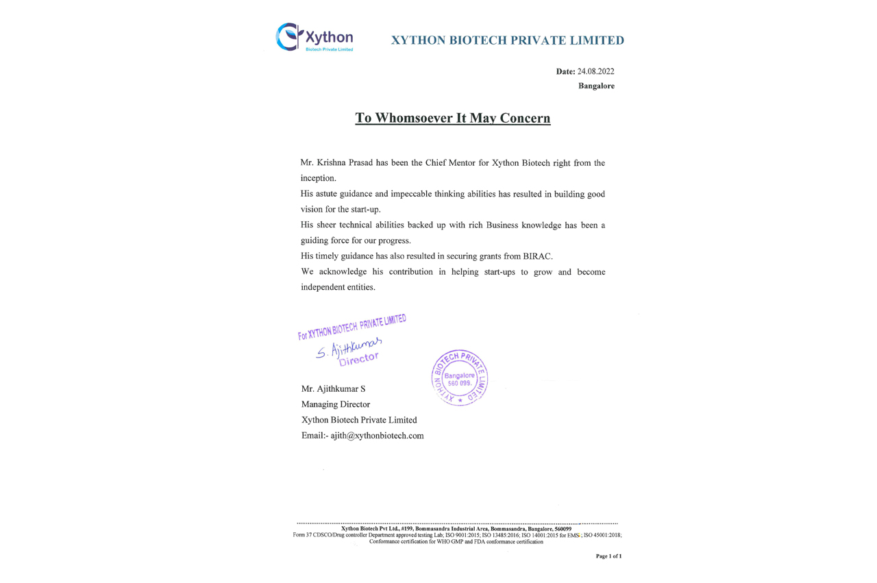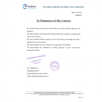 • Member of the advisory board for “Department of biotechnology-Acharya Institutions, Banglore
